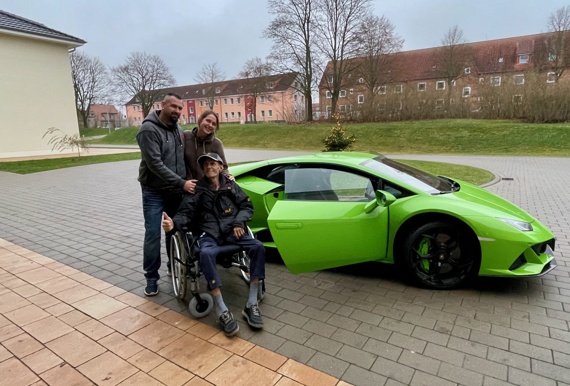 Letzte Woche ist unserem Hospizbewohner Jörg ein großer Wunsch erfüllt worden – eine Fahrt mit einem Lamborghini.